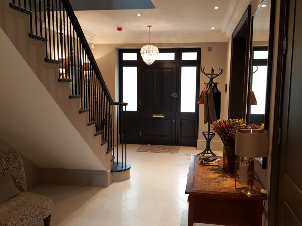 The front door needed to be a defining feature of the property, which invites the potential owners into the classy interior. We used our Traditional Doors design in a 3 panel layout, which was decorated in Farrow and Ball Railings No. 31 to compliment the elegant interior.