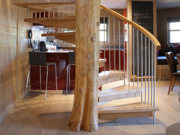 The flight of stairs in the treehouses came from a de-barked tree trunk, supplied to us for use on this project. These flights were hand manufactured in our workshops by our expert staircase team. It wasn't an easy job to undertake, but the finished articles speak for themselves.