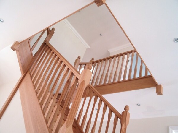 The top of the string on this style of staircase would normally be finished with capping to accommodate the spindles/balusters, which are spaced equally between the newel posts and held in place with infill spacers. This capping can also be slotted to accept glass balustrade panels if required.