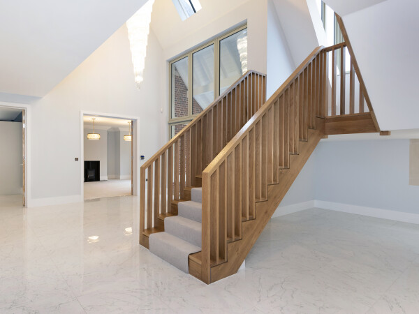 A bespoke made 'Cut String' staircase can dramatically change a hallway or room, and give a grand feel to a property.