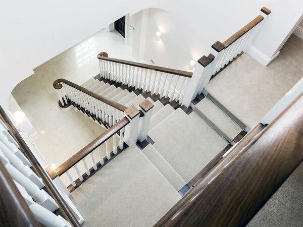 The handrails can either be set in between newel posts, or to achieve a more elegant look, a continuous handrail sitting over the top of the posts can be utilised. The use of a volute is one of the ways you can customize a staircase to your own tastes.