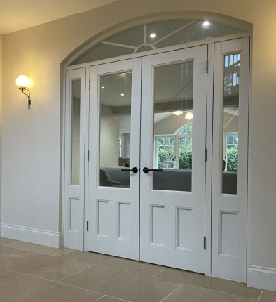 Our doors are manufactured at our workshops in Andover using high-performance materials with a selection of finishes from colours to ironmongery. There are also options with the glass panels including clear, frosted and glass with bonded bars. All of these items would be designed in accordance with your requirements by our in-house technical team.
